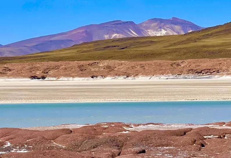 隔日清晨5時,月亮還高懸在地平線之上,天氣酷寒,導遊陸易斯(Luis)陪著我們六位來自不同國家的遊客,到接鄰玻利維亞的高山鹽湖邊。在朝陽初露時,他從車廂裡搬下桌椅,開始準備早餐。在用餐前,他指著這一片荒漠,滿臉自信說:「這裡是未來的杜拜,世界的財富中心。」