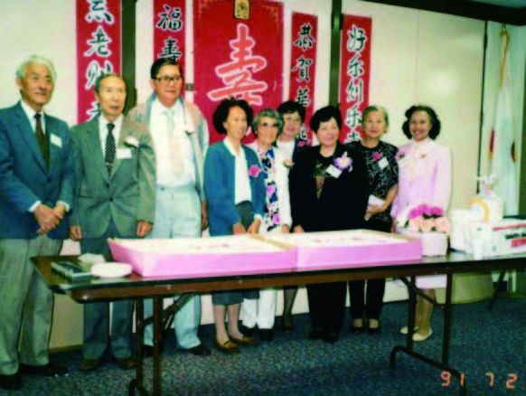 爾灣松柏會在爾灣市老人中心舉辦月會及慶生會,圖中多位為創會時理事。