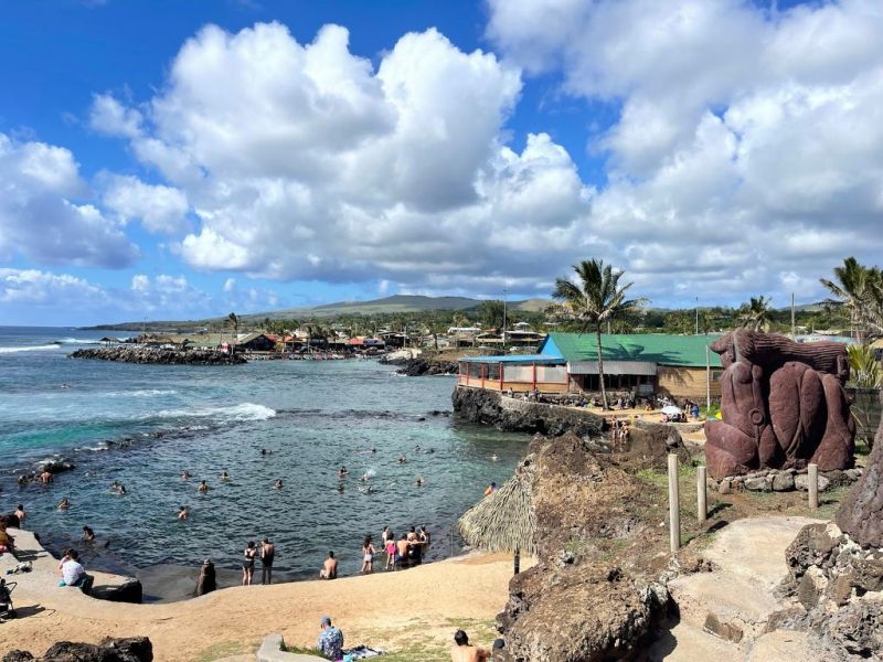 Hangar Roa 是復活節島唯一的市鎮,小漁港旁的海灣是居民游泳戲水之處