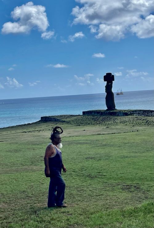 我問Tito,他是不是被這些摩艾石像指引而回到老家?他笑笑不置可否。他描述在Covid-19期間,整個小島封鎖,除了智利政府從本土運來一些必需品外,全島居民由當地政府提供工作機會,有的栽種農作物,有的維修公路,有的整理機場跑道,來維持社區的運作。在兩年多的時間裡,島上的人都成為Tito的兄弟姊妹。「是他們把我的心留在這裡。」難怪他帶著我在島上跑,一路熟人招呼不斷。