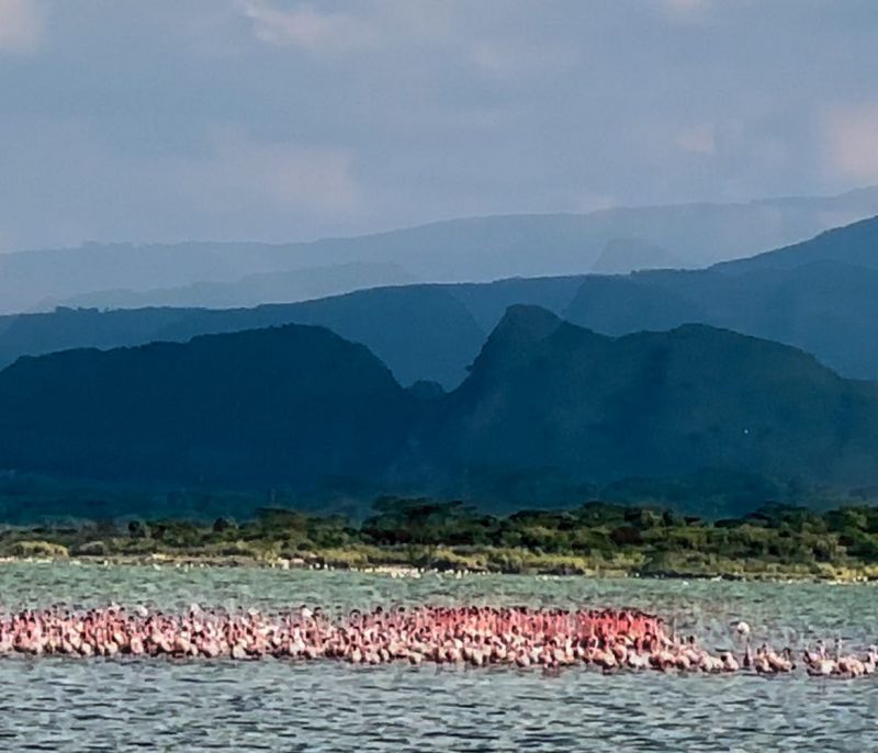 火烈鳥將湖岸染上鮮紅色彩,湖中還棲息其它鳥類