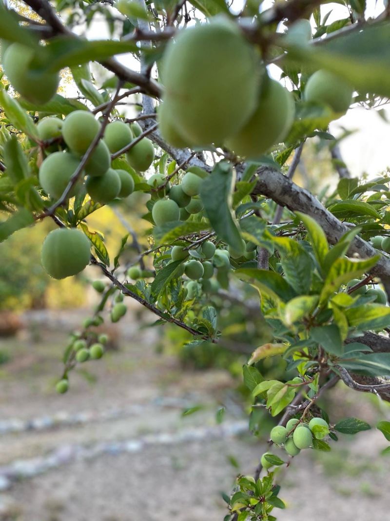 同樣地,生長著六株接骨木樹的那片土地,我們取名為”長者平台”,是我天天流連忘返的園地。各種野生的芳草甘木、良藥藤蔓,蓬勃健康地生長在這片膏腴肥饒之地。我移除修剪枯敗的荒草野蔓,整理出大片肥沃的黑色土壤,光看著也知道是適合耕作的好地方。其實梅樹對土壤要求不是很高,只要排水良好,耐貧瘠、耐寒、耐熱、耐旱、喜光,相當容易種,家園裡每種下一棵就活一棵,失敗率掛零。今年春末,在園丁同心協力地工作下,一排排整齊的梅樹苗接連種下,澆灌系統裝設完成,目前家園裡共計有六十棵了。期待來年冬季,長者平台一片粉紅花海,天地之間,清香飄浮。