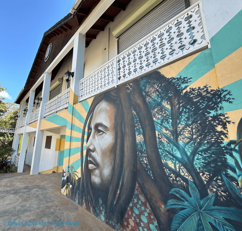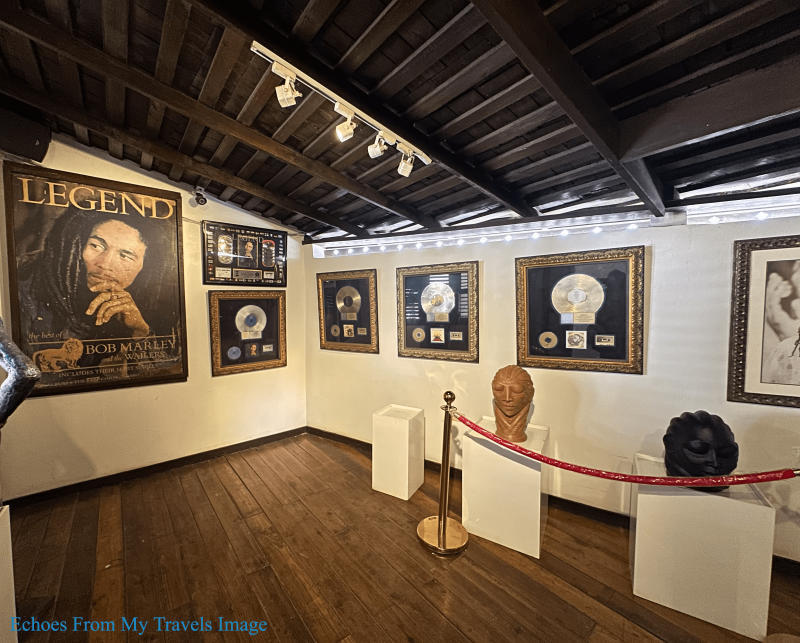走進鮑勃馬利出生的房間,佈置簡樸,他的父親是英國白人軍官,娶了牙買加黑人女子生下他,因父親家人反對,因此他和媽媽被迫從九里村搬到牙買加首都金斯敦貧民窟生活。這是一段陰暗的歲月,但在音樂上,鮑勃馬利找到自己的陽光,還帶給樂迷溫暖、歡樂和力量。在陳列室,掛著鮑勃馬利在雷鬼音樂的成就獎項和一些照片。可以知道他在雷鬼音樂貢獻。今年3月,美國電影院線上映「鮑勃馬利:一份愛」(Bob Marley:One Love)電影,備受好評,故事情節環繞,他在牙買加樂壇成名後,如何到英國和其他歐洲國家,製作和推展雷鬼音樂,最後影響了搖滾樂。從他的音樂中,可以感受到許多正向和美好人生的啟示。難怪西方樂壇頒給他艾美獎,和披頭四,貓王齊名。