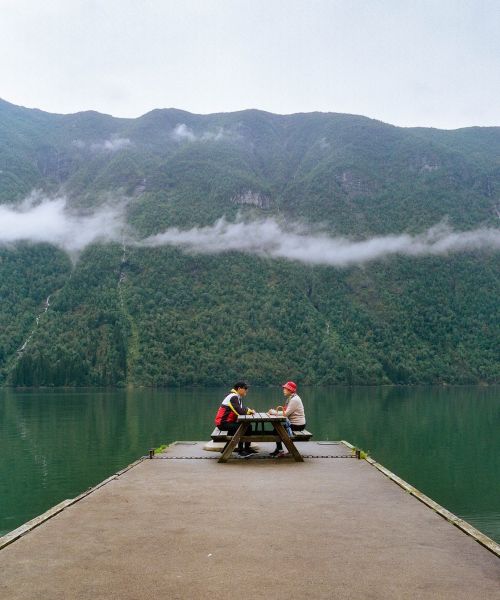 濱臨峽灣,放著很多野餐桌椅,愛書的人取了書,隨意坐下閲讀,如鏡水面倒映著藍天白雲和對岸山影。讀累了,放下書,欣賞身旁美景,另一番享受。