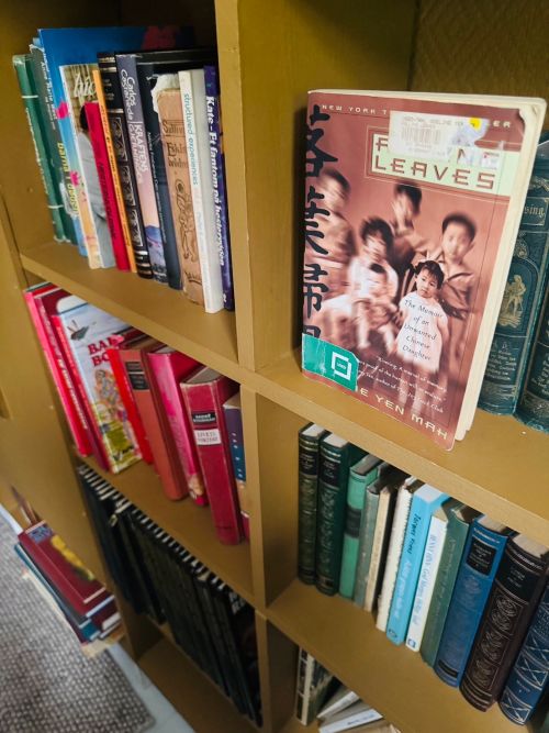 放下行李,愛書的人馬上奔向書架。第一本進入眼簾的竟然是一位認識的華裔作者-馬嚴君玲Adeline Yen Mah所寫的英文自傳 ”Falling Leaves 落葉歸根”,她本人就住在南加州橙縣。看到她的精心著作漂洋過海到了北歐的小鎮,倍覺親切與溫馨。