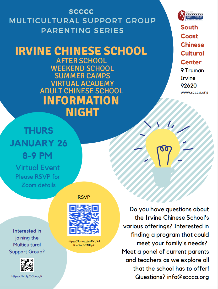 At that time, teachers from our Cultural Center will introduce the various programs and courses to you. Not only that, we welcome interested parents to join us to share your experiences. The composition of the Multicultural Support Group has its particularity, so the various Chinese courses of the South Coast Cultural Center are committed to adapting to the needs of different ethnic groups to learn Chinese, in order to provide the best experience of Chinese and cultural courses.