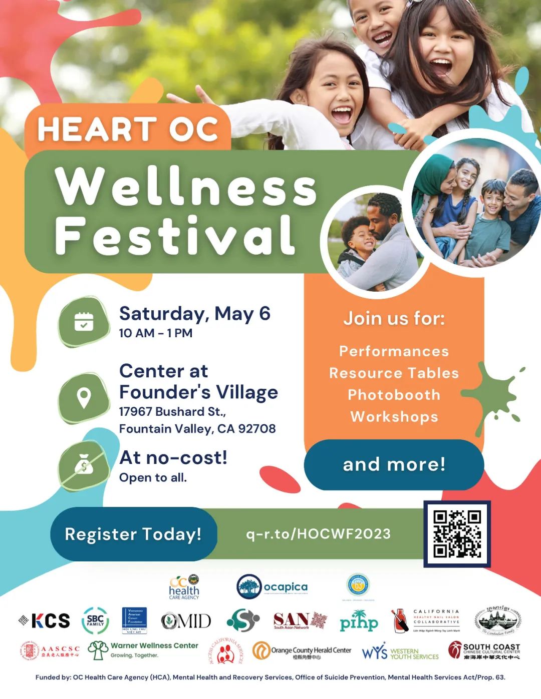 Welcome to j oin the Heart OC Coalition for a fun-filled day of performances, mental health resource booths, wellness workshops, and activities such as photobooths, coloring, and more! Together, we will celebrate our community health and wellness.