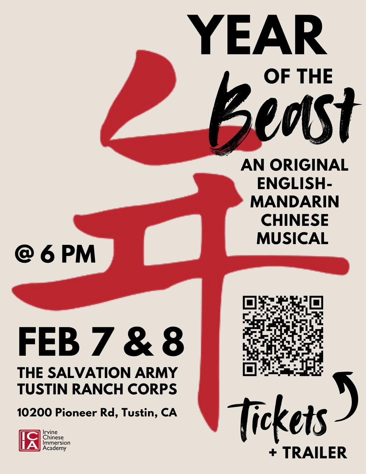 2月7日和2月8日晚間6點在Tustin Salvation Army Tustin Ranch Corps 隆重登場 |