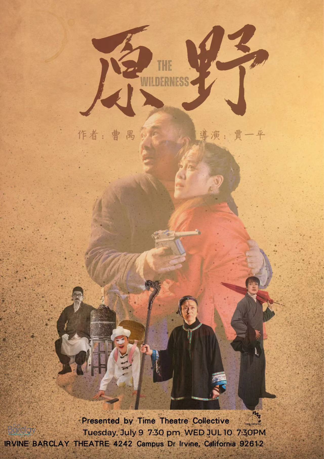 演出時間: - 2024年7月9日(週二)晚7:30 - 2024年7月10日(週三)晚7:30 演出地點: Irvine Barclay Theatre TTC 時光劇團出品及製作,賈一平執導並主演,曹禺先生巨作《原野》北美公演版將在加州 Irvine Barclay Theatre 上演,為您帶來一場精彩絕倫的戲劇。
