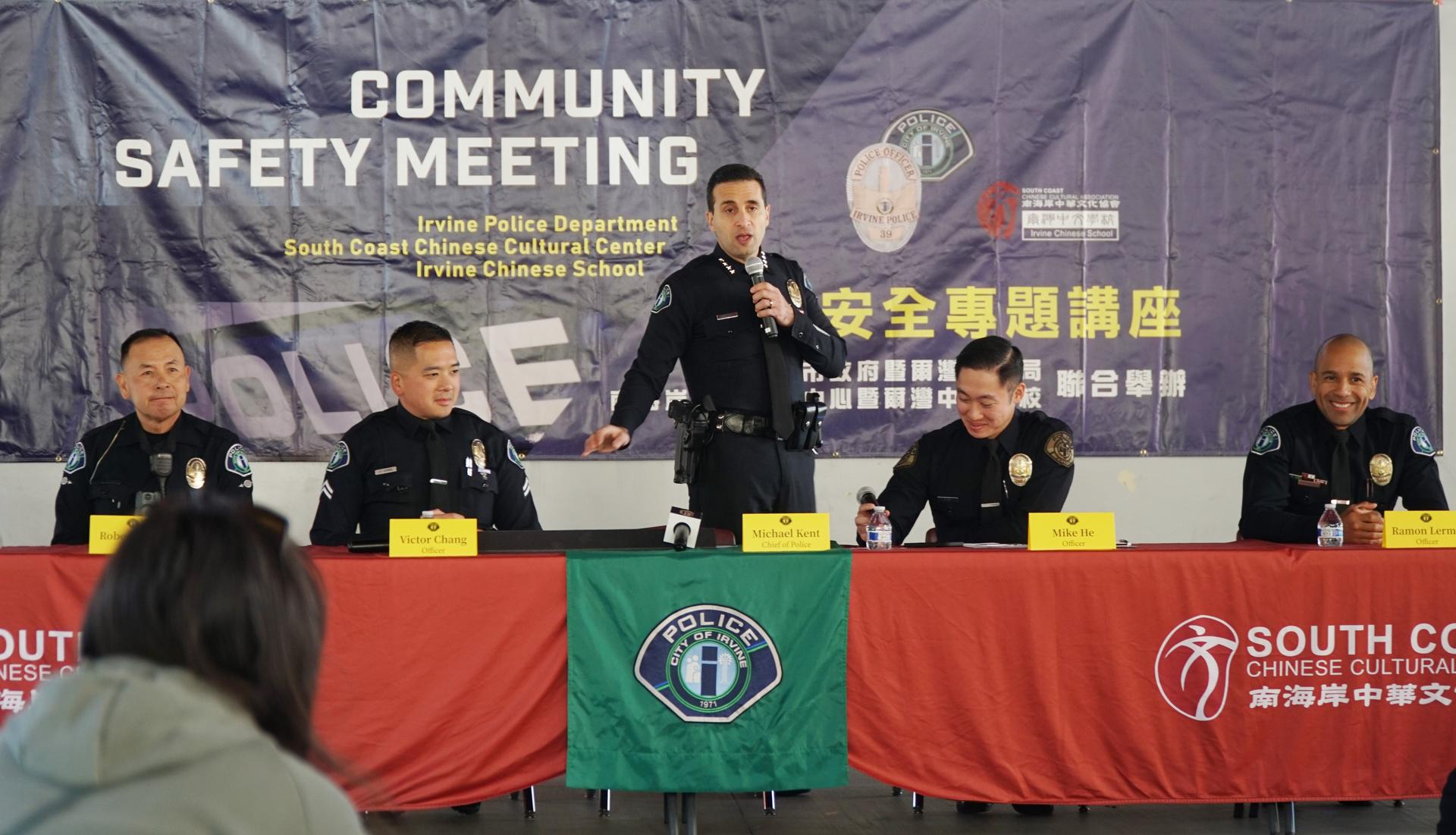 On November 16, at a community safety forum organized by the South Coast Chinese Cultural Center and Irvine Police Department , Chief of Police Michael Kent announced plans to increase the number of Chinese-speaking officers to ensure the safety of Chinese residents... |