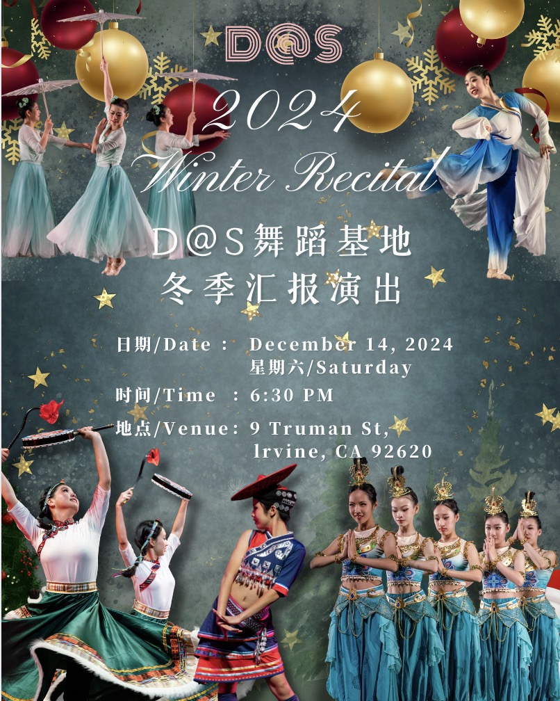 Date: 12/14/2024 Sat 6:30PM Location:9 Truman , Irvine This winter, let dance ignite your passion! DAS Dance Base will hold a winter Christmas performance on December 14th. We |