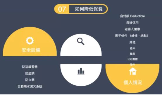 在家里安裝防盜報警器,防盜鎖,防火器,自動噴水滅火系統等都可以降低保費。