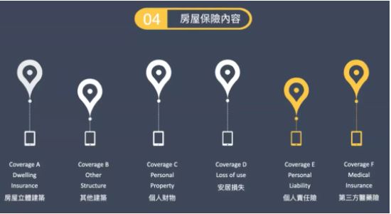 比如您家裡開Party,有客人在樓梯摔倒受傷了,您就需要使用E和F來賠付給對方。