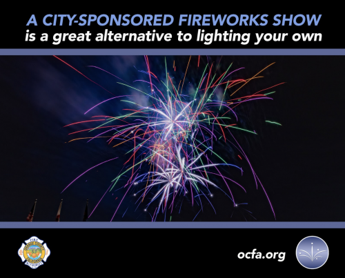 安全煙花在以下地區是合法的:Anaheim, Buena Park, Costa Mesa, Fullerton, Garden Grove, Huntington Beach, Santa Ana, Stanton, Villa Park, and Westminster. 在橙縣的所有其他城市,包括Irvine,所有煙花都是非法的。