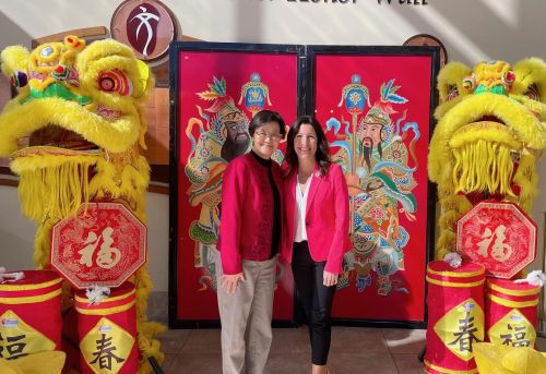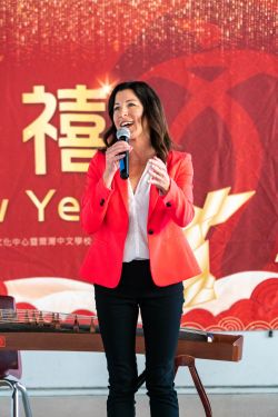 爾灣中文學校師生及家長,21日及22日兩天在校園中歡慶農曆新年。代表加州第73選區的州眾議員Cottie Petrie-Norris,及爾灣中文學校創校校長符慕美枝,22日應邀與師生同慶佳節。Cottie Petrie-Norris致詞說,很榮幸受鍾幼蘭校長邀請出席爾灣中文學校的新年活動,今年是兔年,而她的生肖也屬兔,她祝福大家新的一年充滿源源不絕的平安、喜樂與幸福。
