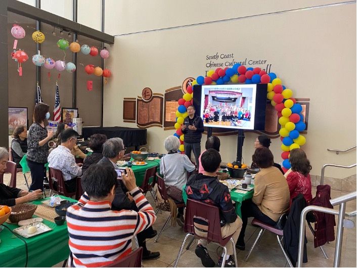 六月的週二早晨見面會,移到南海岸中華文化中心大廳舉行,多位爾灣松柏會合唱團團員應邀出席,帶領全場高唱《遊子吟》、《母親您真偉大》、《又見炊煙》,熟悉的歌曲拉進了彼此的距離,來賓們也紛紛自告奮勇,輪流分享中英文歌曲及朗誦,帶動熱鬧歡欣的氣氛。