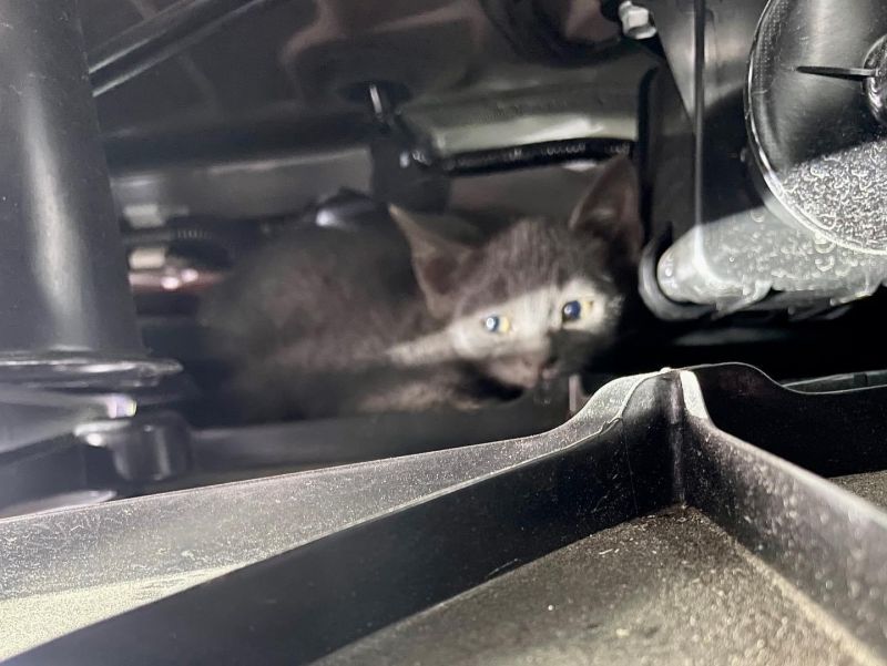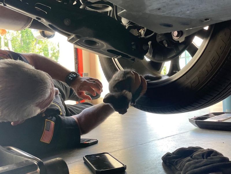 She stopped her car to move the kitten out of the street but it had disappeared. Thinking the baby cat ran off, she continued about her day. When she stopped at her destination she heard a kitten meowing, then heard it again when she got home later that day. She couldn’t find the well hid kitten so she decided to stop by station 61 and the crews went to work looking for it. After removing some of the underbody the kitten was located and removed from the car. Happy to report the kitten was not injured and has already been adopted to a loving home.”