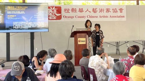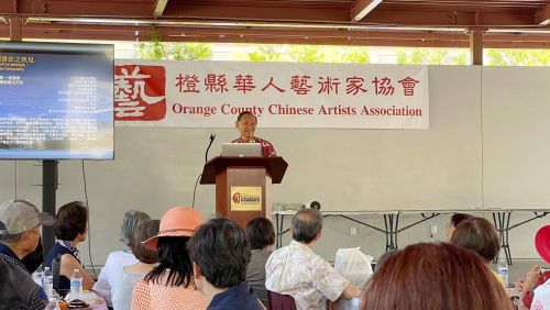The Orange County Chinese Artists Association held its 2023 annual meeting on July 15 at the South Coast Chinese Cultural Center. Dr. San-Pao Li, a professor emeritus from California State University Long Beach, was invited to give a keynote speech titled "Scent of Ink Amid A Gentle Breeze: My Perspectives on Chinese Calligraphy." The event also featured an exhibition of artworks by association members, and over a hundred guests participated in this gathering to exchange their creations and inspirations.