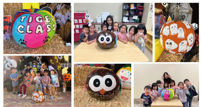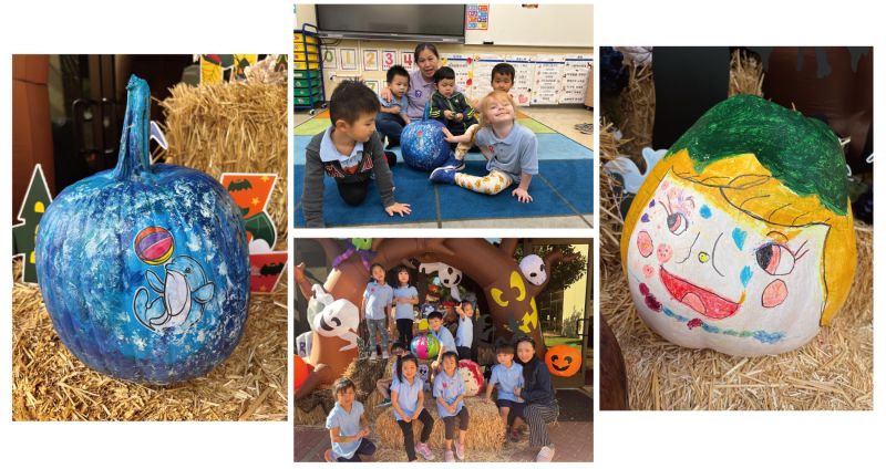 中英雙語沈浸學校的小朋友剛完成繪製他們的班級南瓜喔,近期也會裝飾在中心門口,歡迎大家來欣賞他們的作品。