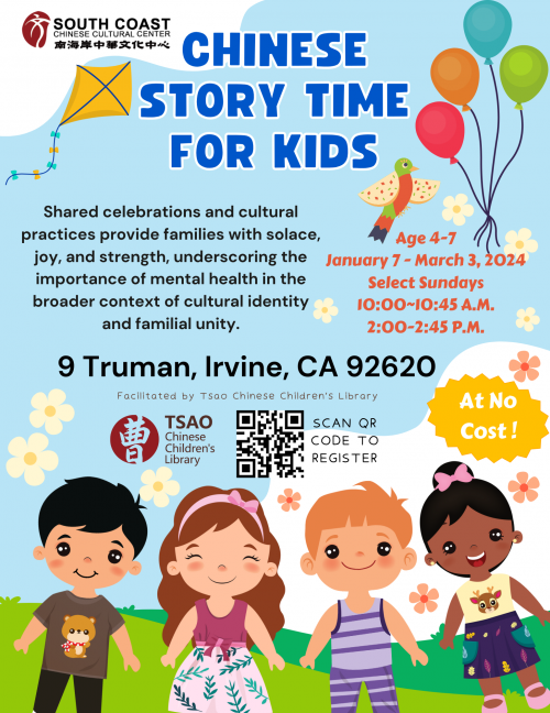 Our Chinese Children's Library, located at the South Coast Chinese Cultural Center, has been dedicated to providing a rich and colorful learning experience for children aged 4 to 7. In order to make Sundays more enjoyable for children, we organize special parent-child activities every Sunday at 10 AM and 2 PM.