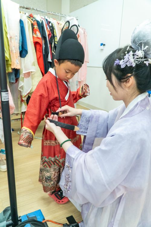 Subsequently, guests tried on various exquisite Hanfu costumes themselves. Costumes from various periods from the Han Dynasty to the Qing Dynasty were prepared on-site, each with its own unique features, showcasing the unique charm of ancient clothing. Staff patiently provided dressing guidance to each participant and listened to their preferences to ensure that everyone could find the most suitable Hanfu style for themselves. The try-on process not only deepened the understanding of Hanfu but also allowed people to feel the nobility and elegance conveyed by traditional Han clothing. To ensure that this wonderful experience remains unforgettable, professional photographers were arranged on-site to take photos for everyone to keep as memories. The beautiful moments of wearing Hanfu were captured in each photo, recording this unforgettable memory. Participants posed with various graceful poses in front of the camera, showcasing the charm and elegance of Hanfu.