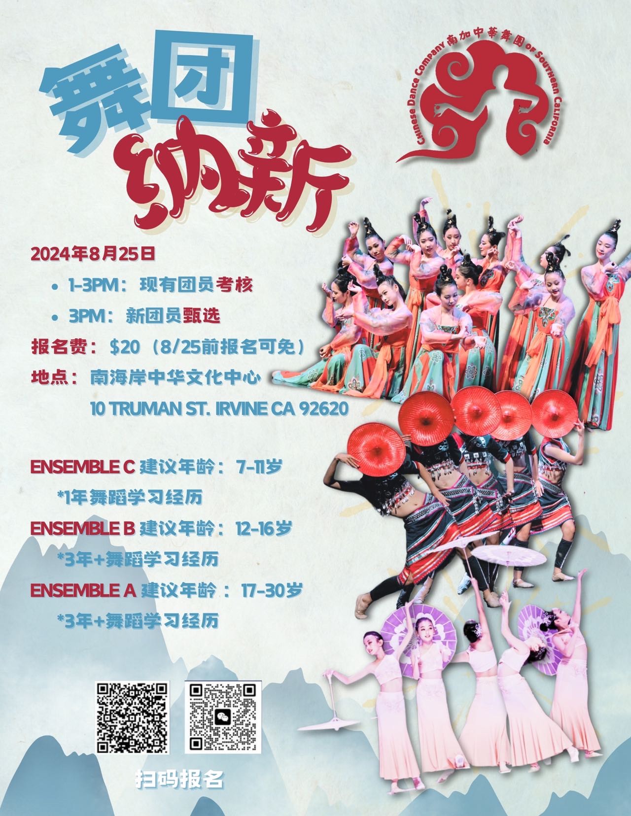 歡迎熱愛中華舞蹈的舞者們快來參與南加中華舞團的2024-2025甄選,加入傳播中華舞蹈的行列。在新一學年,南加中華舞團將為團員提供豐富的學習機會與表演平台。