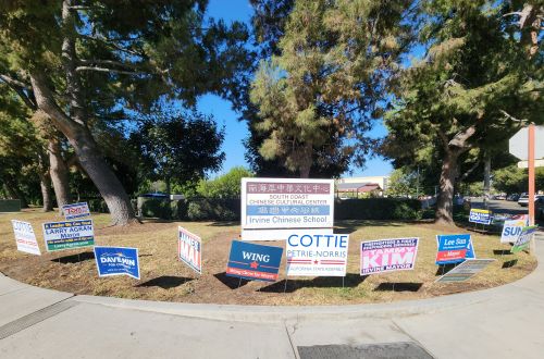 包括爾灣市長、市議員、學區等九合一選舉與加州提案表決即將在11月5日同時舉行,今年爾灣市長與市議員選舉因參選者眾,選情更加緊繃,而持續在推動中文教學和舉辦各項文化藝術相關課程的南海岸中華文化中心,因每天進出家長頻繁,意外成為各候選人兵家必爭之地,大門外圍出現插滿候選人宣傳看板的熱鬧景象。