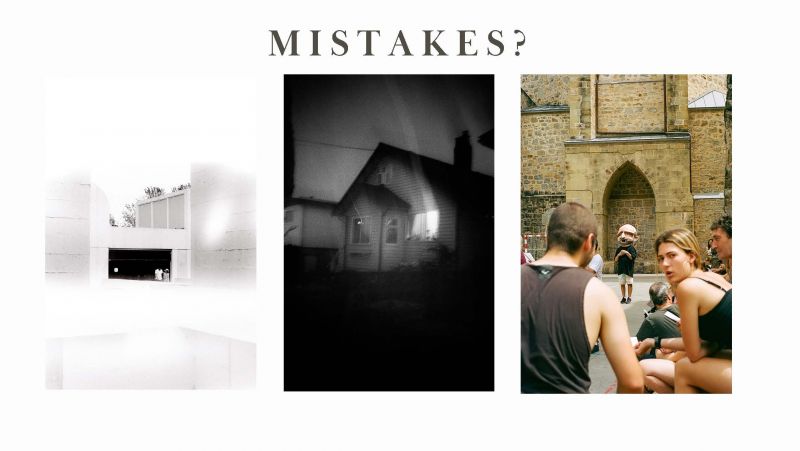 在拍攝過程中,常會出現失誤,讓照片無法正常成像,但這些「錯誤」有時卻帶來意外的驚喜。他舉了三個例子:過曝、晃動、錯過拍攝時機,這些看似失誤的照片,反而呈現出意料之外的氛圍,與原本的設想不同,但結果依然讓人滿意。
