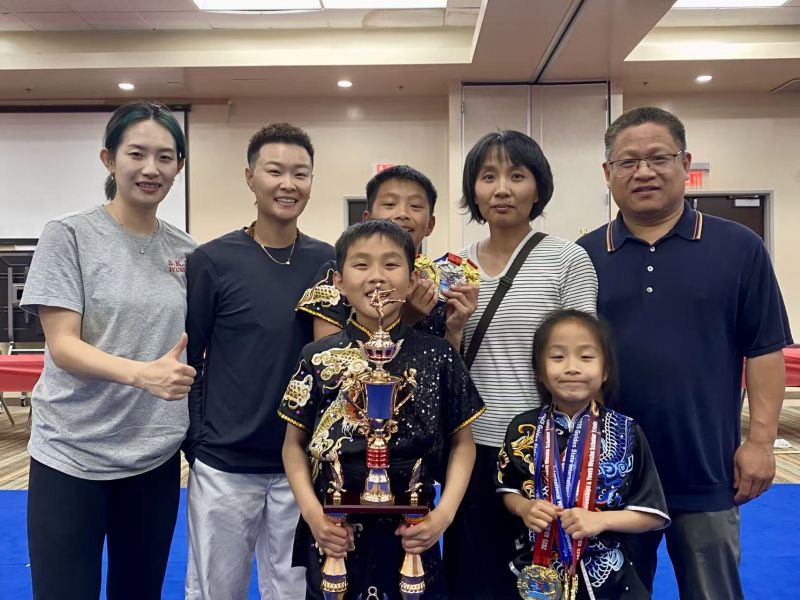 其中最受矚目的黃家三兄妹——13歲黃筆碩、10歲黃奇果、7歲黃多蕾,分別以雙鉤、雙刀、長槍、長拳、刀棍等項目,獲得多面金、銀牌,並全部入選美國國家功夫隊。黃奇果更在9-10歲組綜合評分中從200多名選手中脫穎而出,獲得第三名全能優異獎。