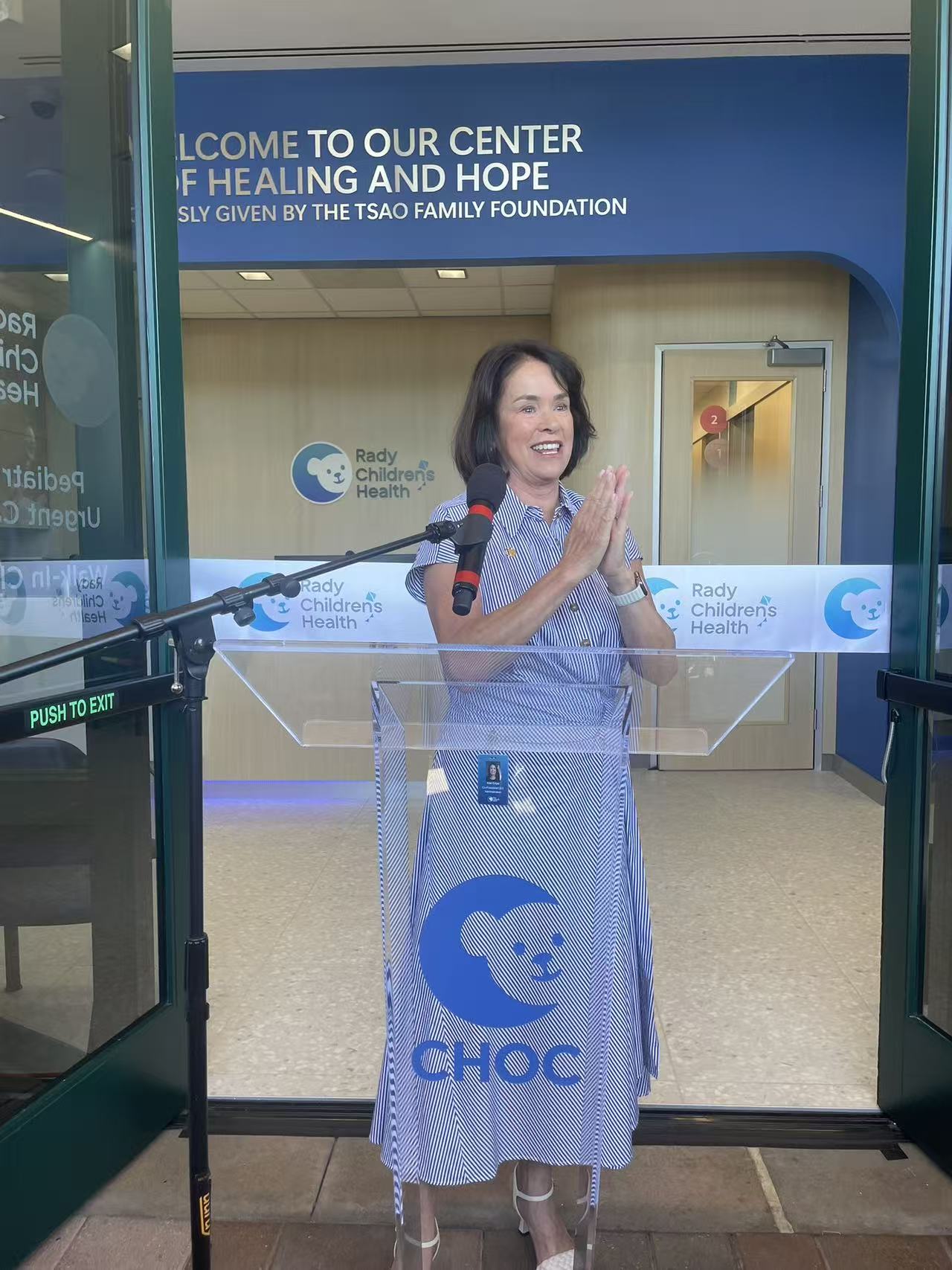 Rady Children’s Health 總裁兼執行長 Kimberly Chavalas Cripe致詞指出,感謝曹氏家族基金會的遠見和慷慨捐贈,讓爾灣社區能迎來首座專屬兒童的急診中心據點。「這種結合專業醫護團隊與社區需求、創新打造的醫療照護模式,將確保孩子在第一時間獲得最妥善照護,也將為社區醫療服務,帶來嶄新典範。」