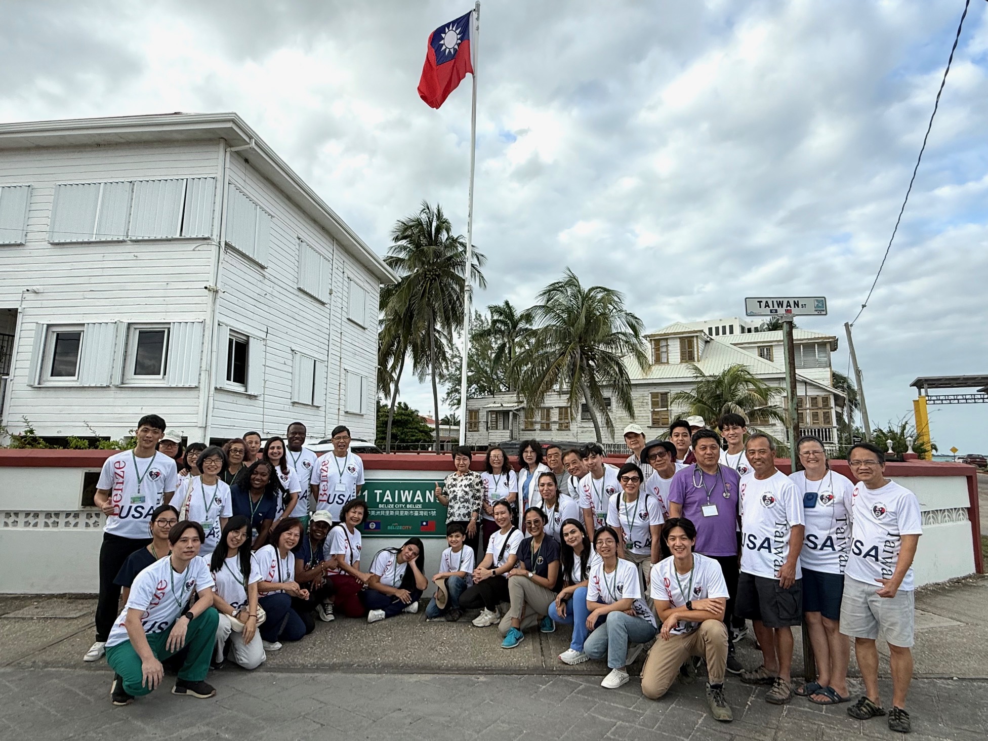 Dr. Hsu and the international medical mission team posed for a photo with Taiwan’s Ambassador to Belize, Lily Hsu, in front of the embassy.