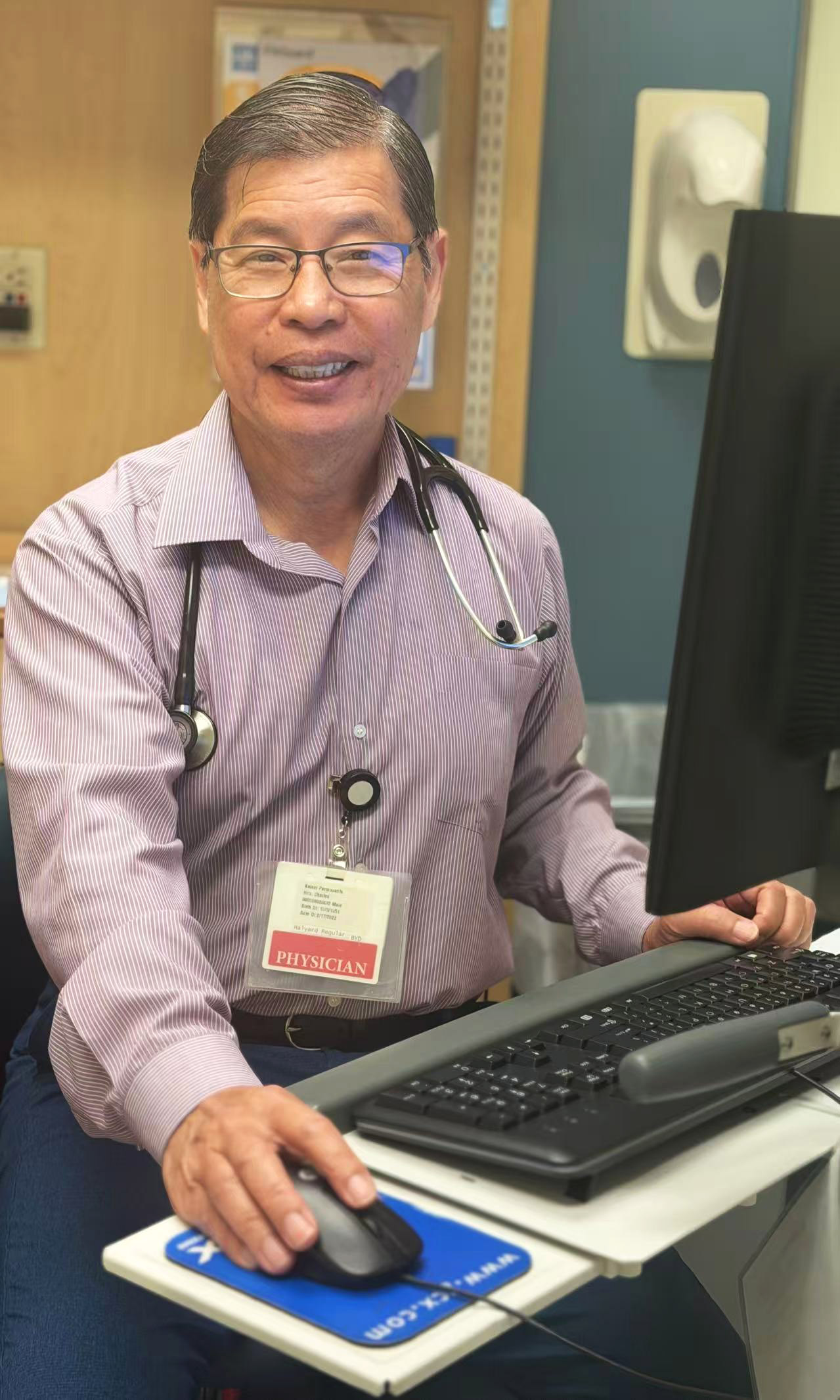 Inside the Kaiser Permanente clinic in Fountain Valley, retired family physician Dr. Charles Hsu gently checks the pulse of a centenarian patient, his tone calm and kind.