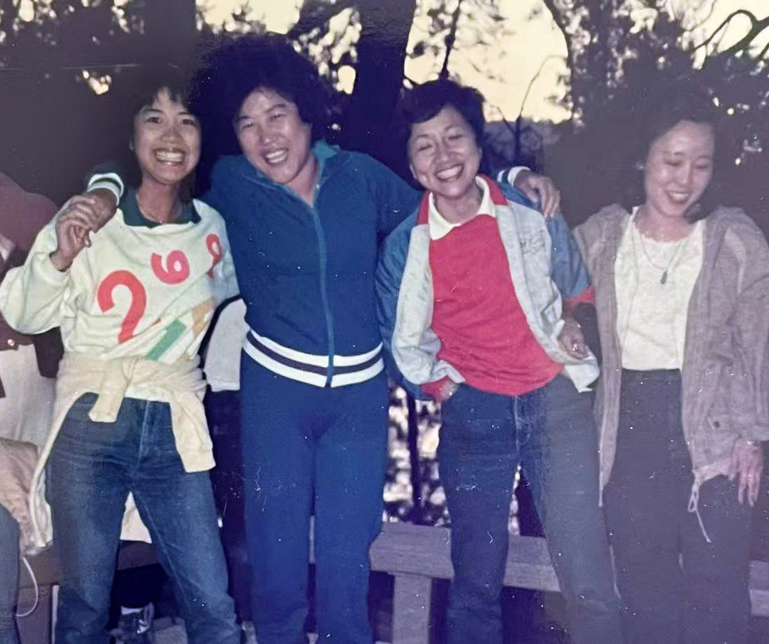 爾灣中文學校前校長鄭峰(由左至右)與創校校長符慕美枝、前校長陳淑妍與李家萍在大熊湖合影。