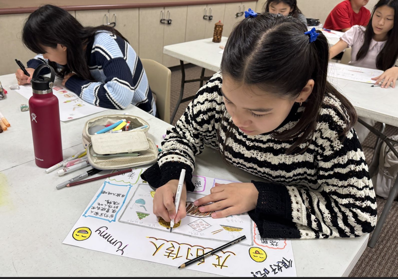 Irvine Chinese School holds an annual Fall Academic Showcase, where students present their Chinese learning achievements through poster creations.