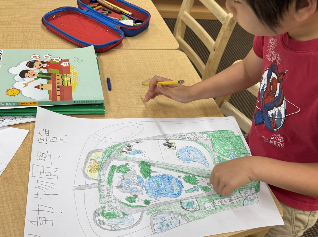 Teachers led students to closely observe and explore their surrounding communities, and through Chinese handwriting, drawing, and visual design, students developed their own original creations.