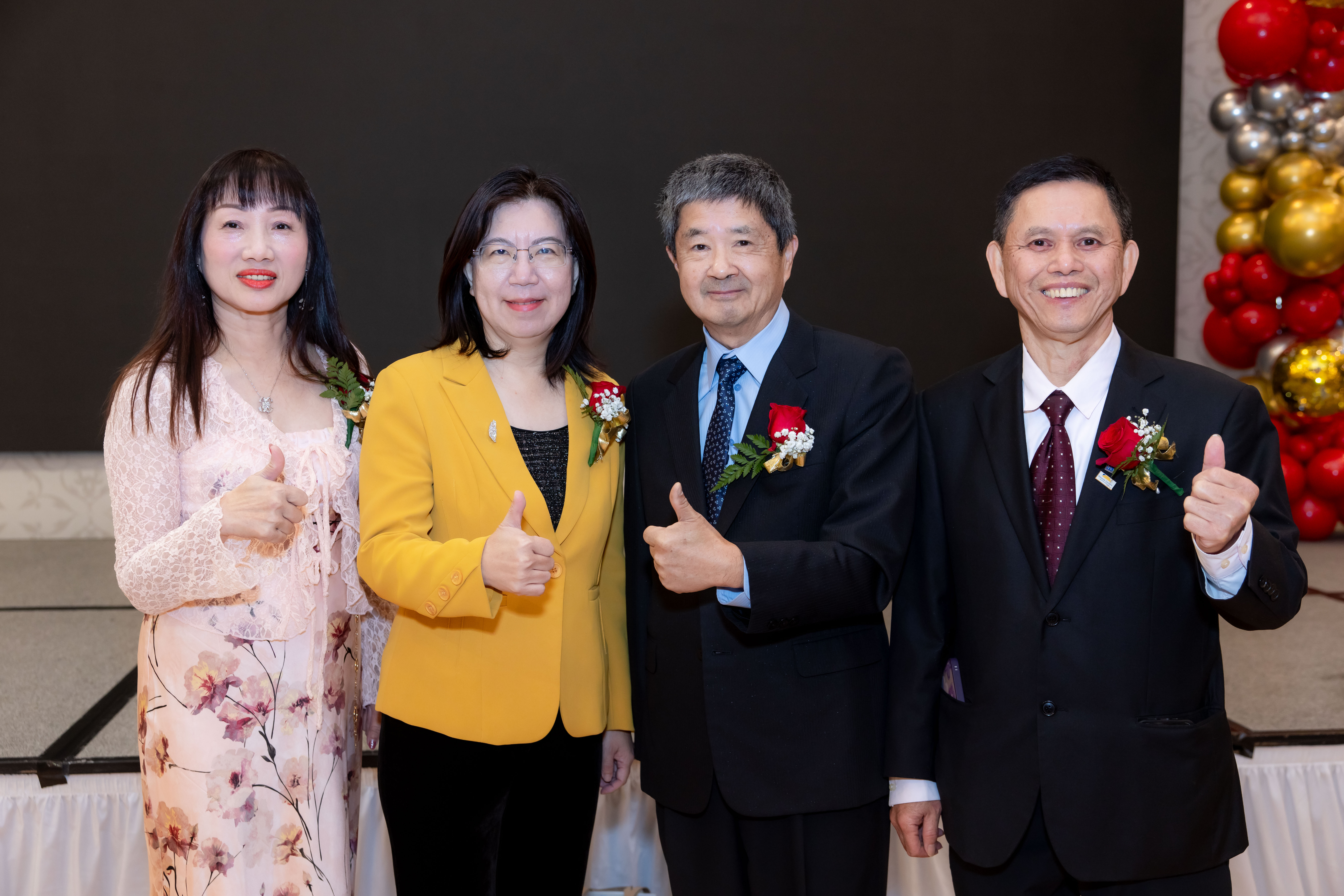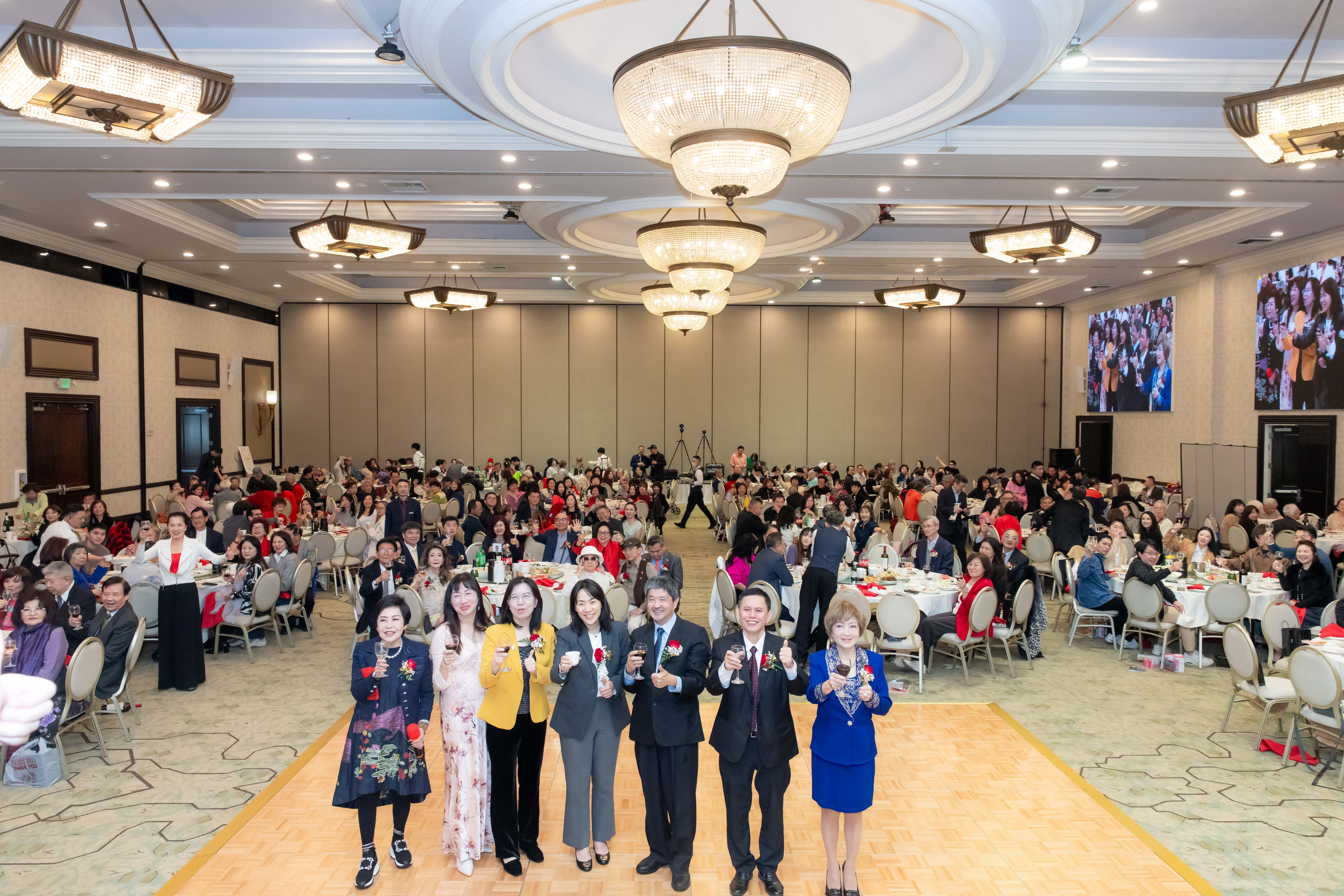 海關會鄉親大會亦獲得各界肯定與支持,包括駐洛杉磯台北經文處副處長陳令欣(由左至右)、洛杉磯僑教中心主任鍾佩珍、蒙特利公園市市長楊安立、爾灣市議員劉令淳與橙縣華人商會前會長胡安瀅等多位政府代表、民選官員與僑界人士,都到場祝賀並表示支持。