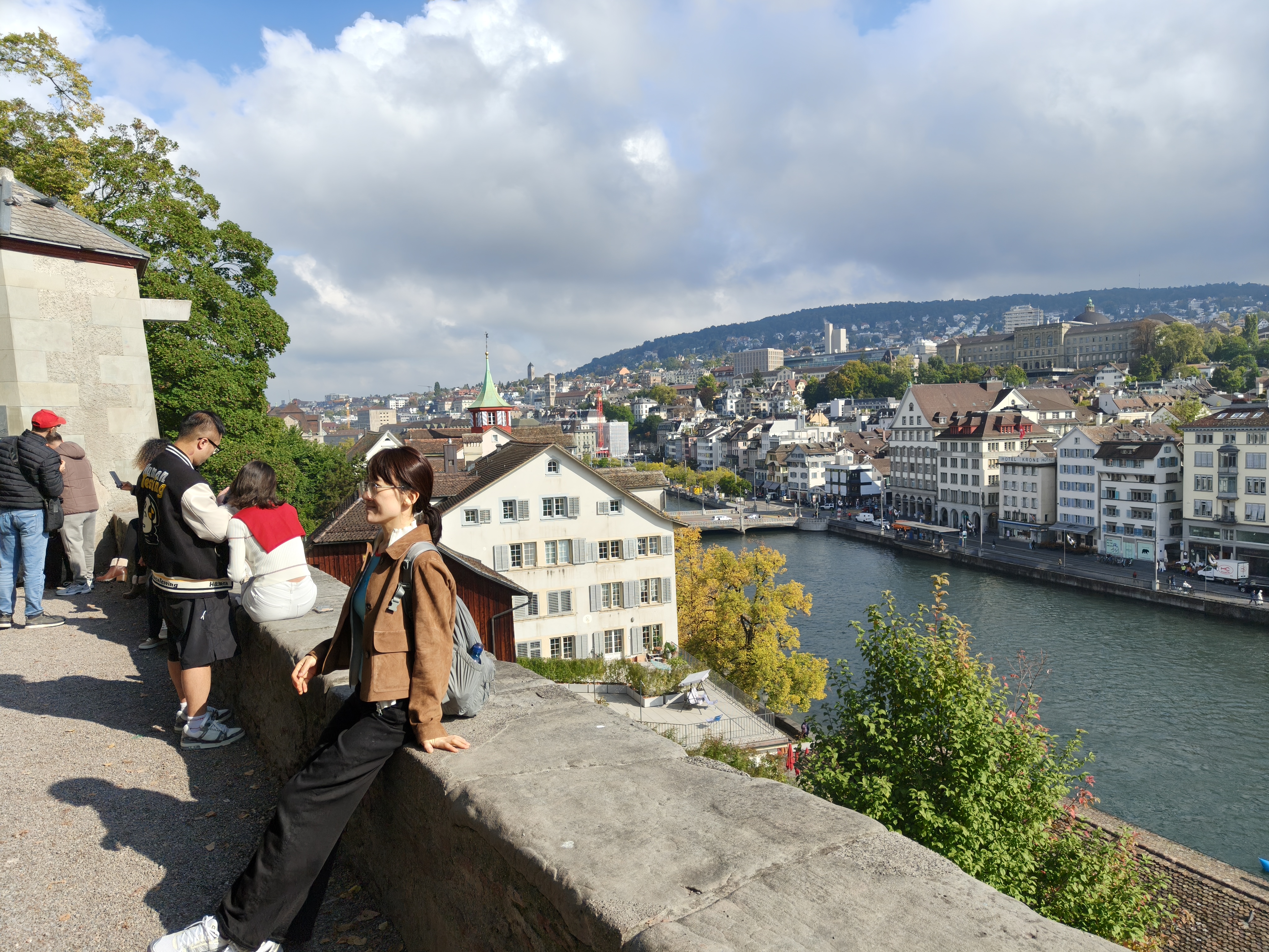 站在老城高處回望,利馬特河靜靜流淌,屋頂與塔尖在水面上映出柔和的輪廓。人們倚著城牆停留、交談、遠望,城市在這一刻顯得從容而安靜——
