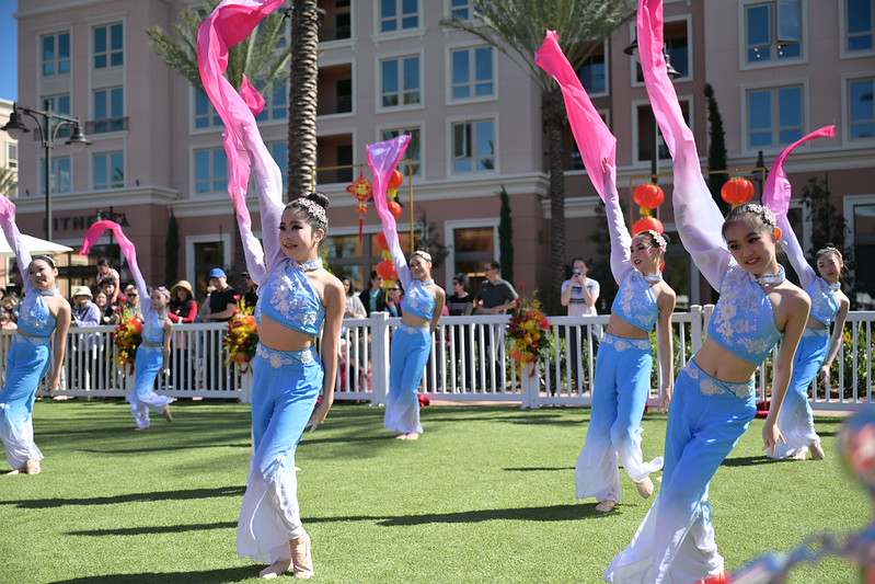 Next, dancers from the Chinese Dance Company of Southern California glided onstage in flowing costumes, presenting Festive Dolls, Echo, and Whispers of Spring.