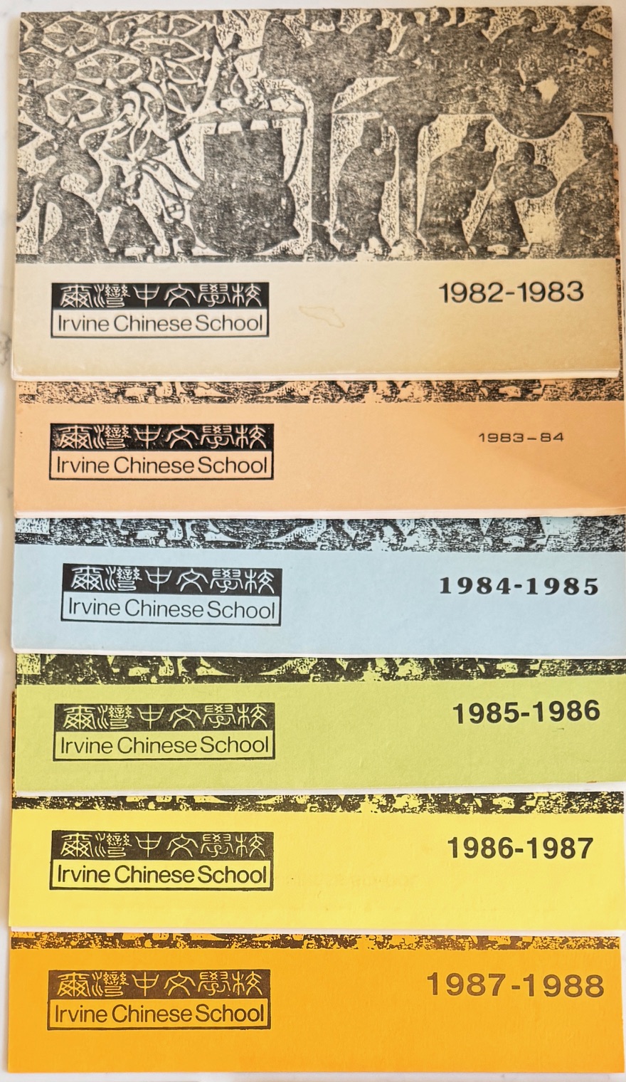 爾灣中文學校1982-88年的學生手冊,均採用王友遂設計的封面