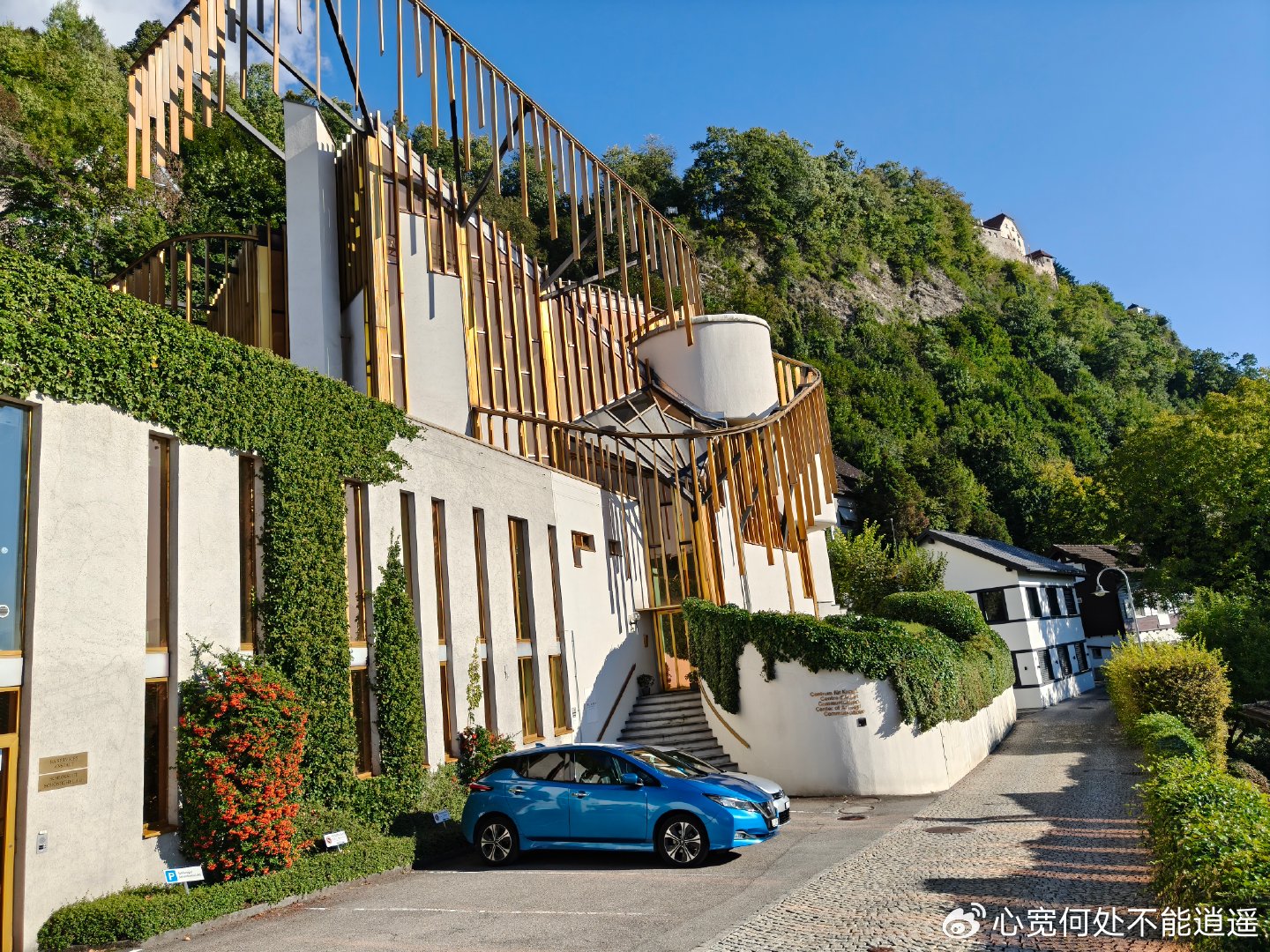 瓦杜茲也不止於歷史。依山而建的現代建築,白色外牆與起伏的木質立條形成流動線條,藤蔓沿著牆攀爬,與周圍綠坡自然融合。