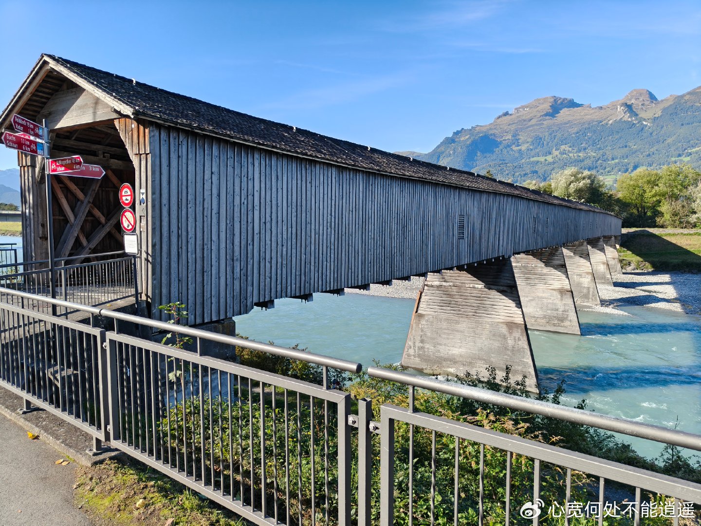 沿著萊茵河慢慢走去,一座傳統的有頂木橋橫跨河面-萊茵河古木橋(Alte Rheinbrücke)。它建於19世紀,連接瓦杜茲與瑞士一側的小鎮(Sevelen / Buchs一带)。