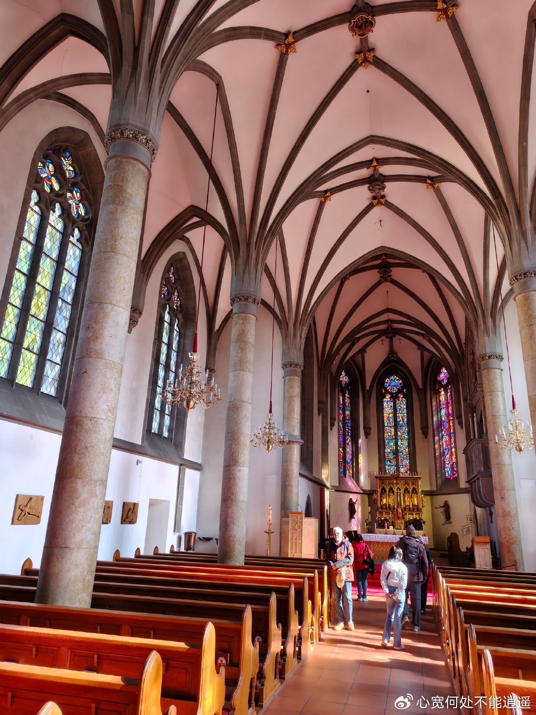 綠樹環繞,階梯與拱廊層層展開,讓教堂自然融入山城環境。鐘聲彷彿不急促,只是溫和地提醒時間流逝。