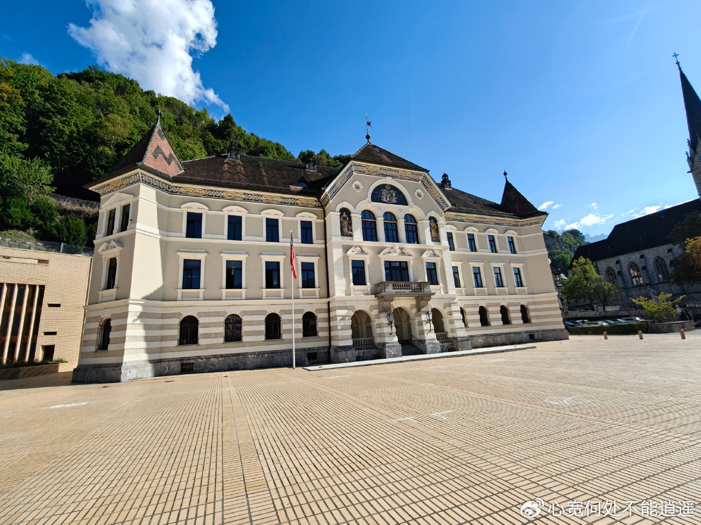 不遠處,是建於19世紀末的新文藝復興風格建築-列支敦士登政府大樓。立面莊重對稱,裝潢細緻典雅。