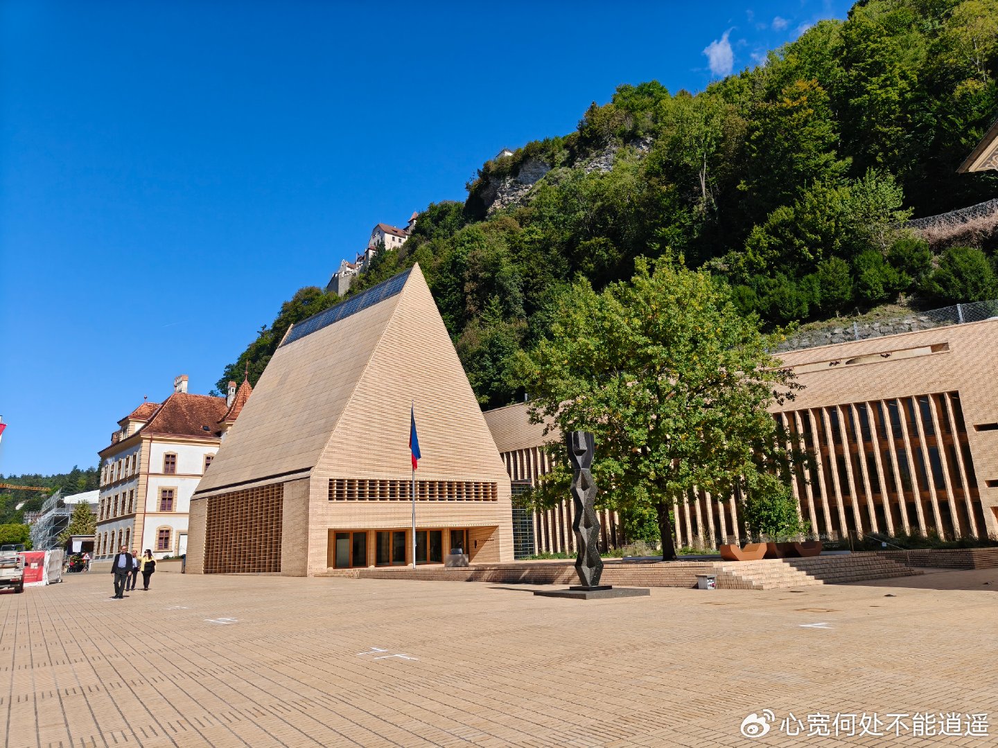 市中心的廣場開闊而安靜。這裡是列支敦士登議會大廈所在區域。現代建築以淺色木質與簡潔幾何造型呈現,外觀低調理性,是國家議會的辦公與議事場所-列支敦士登議會大廈。