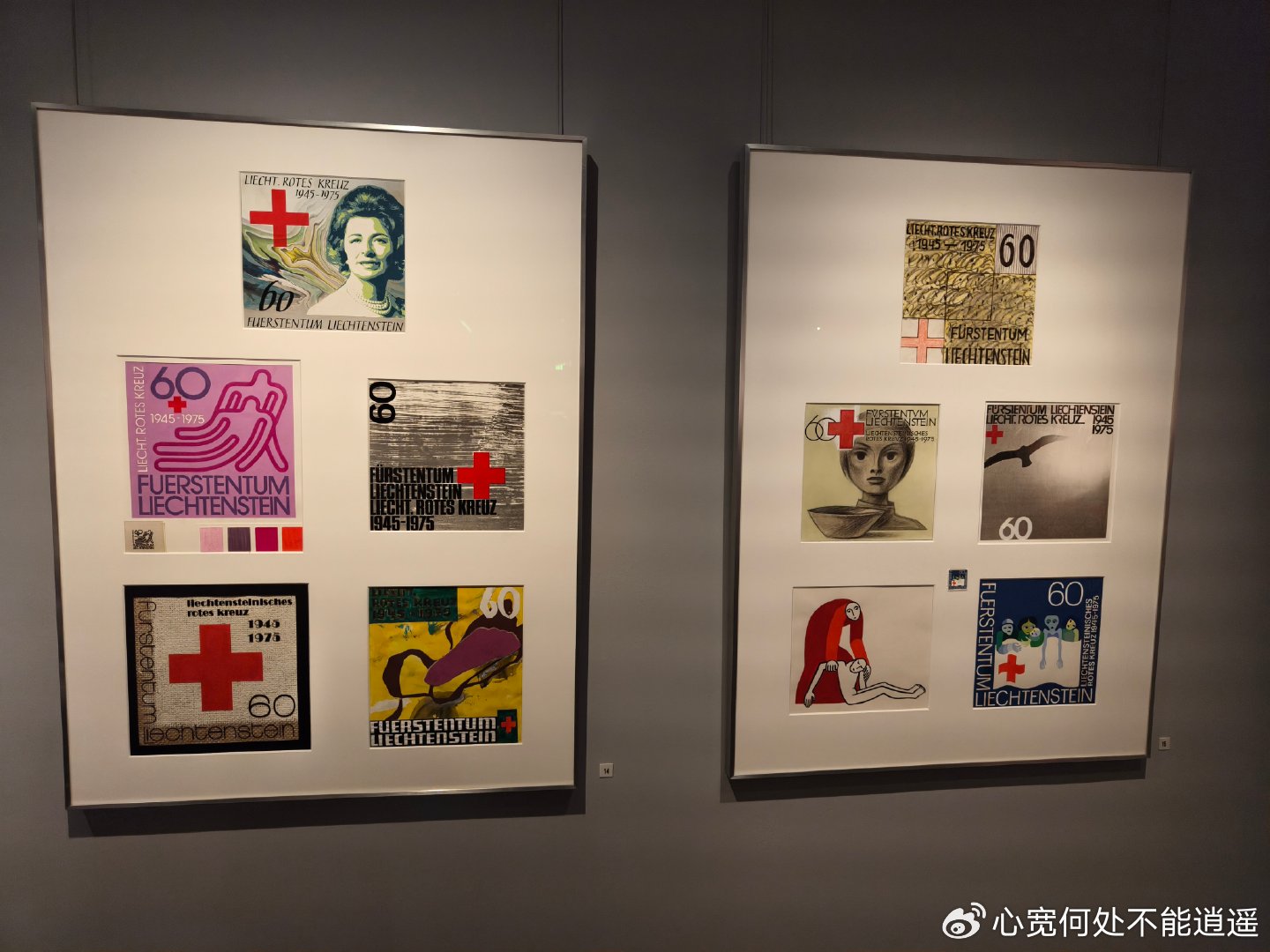 在這樣一個面積不大的首都裡,文化卻異常精緻。列支敦士登郵票博物館的展廳安靜整潔,牆上陳列著多組郵票設計原作與成套作品,以紅十字主題為主,風格從寫實肖像到抽象圖形不一而足。