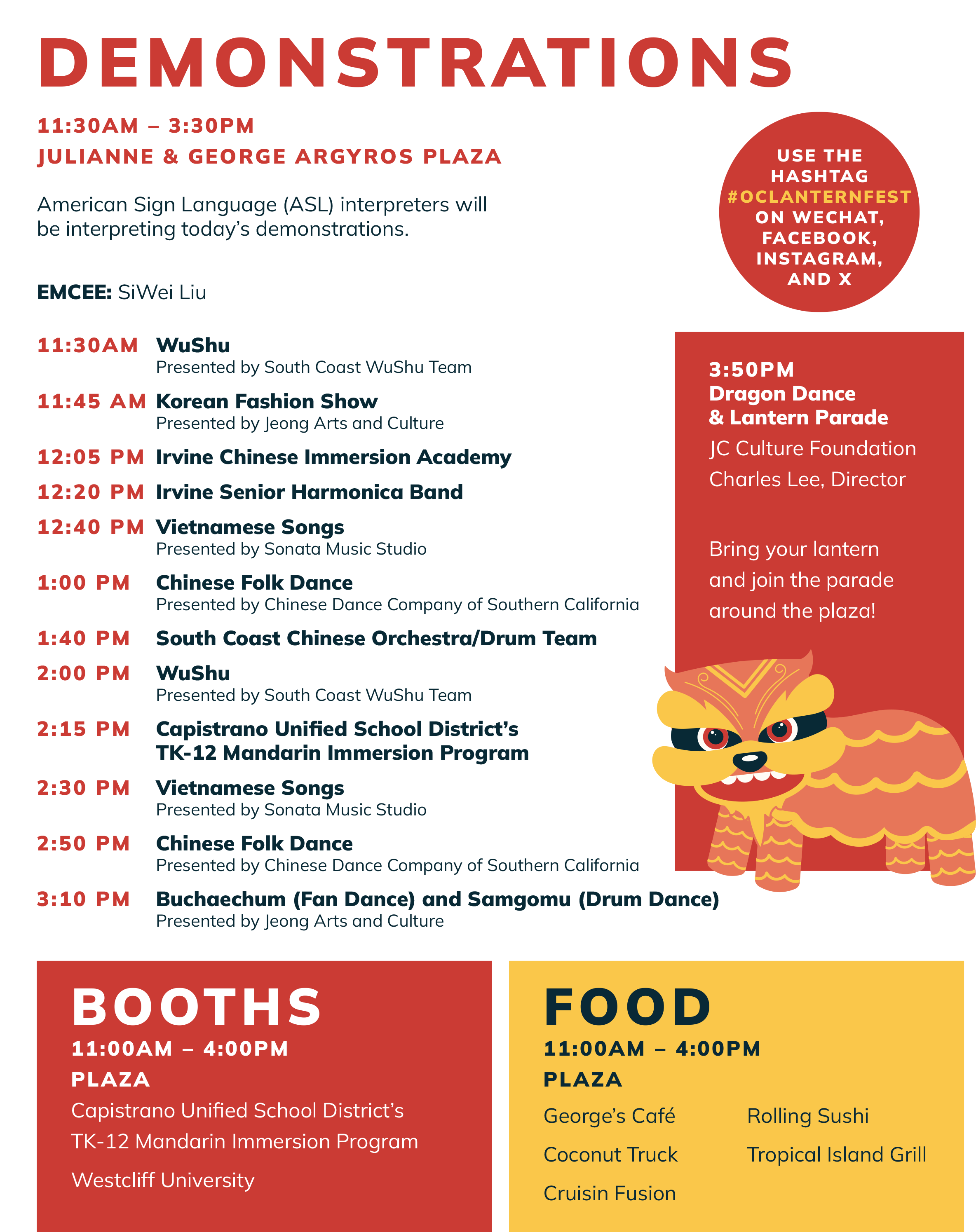 The celebration also features calligraphy, art exhibits, lantern painting, riddles, hands-on crafts, and Asian food vendors—offering guests an immersive cultural experience beyond the stage.