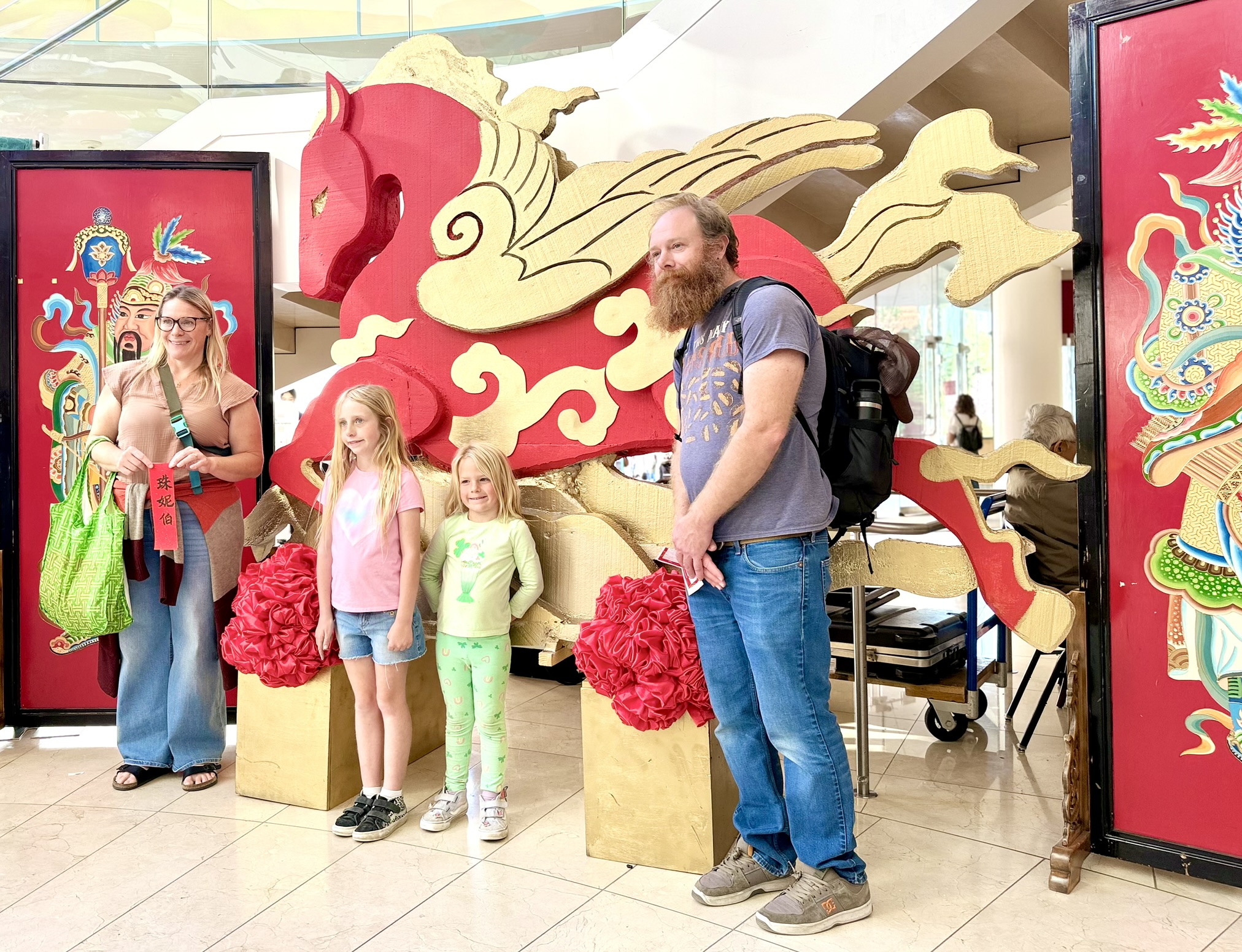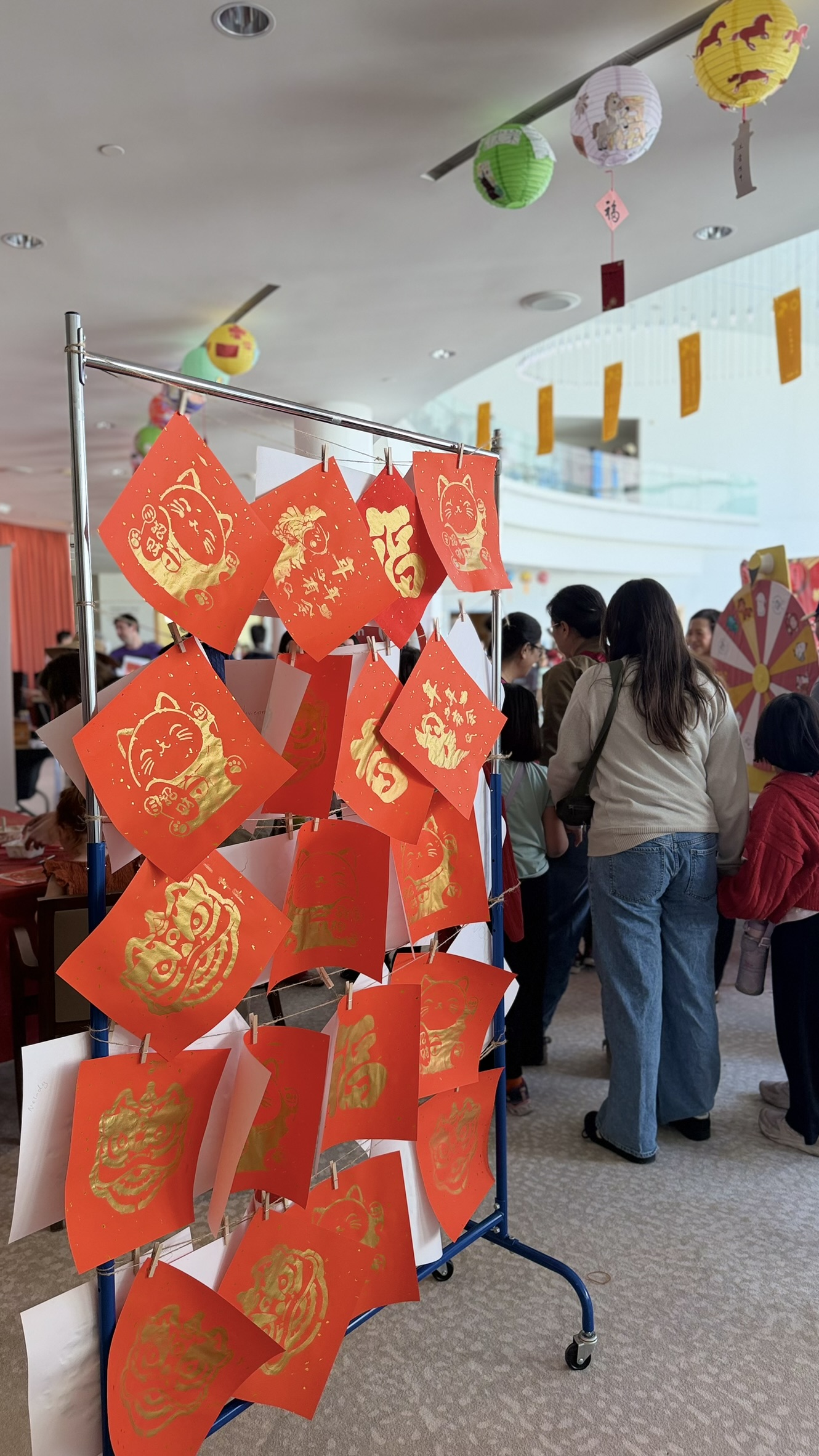 Colorful lanterns, a Year of the Horse display, and a festive Chinese archway turned the lobby into a popular photo spot.