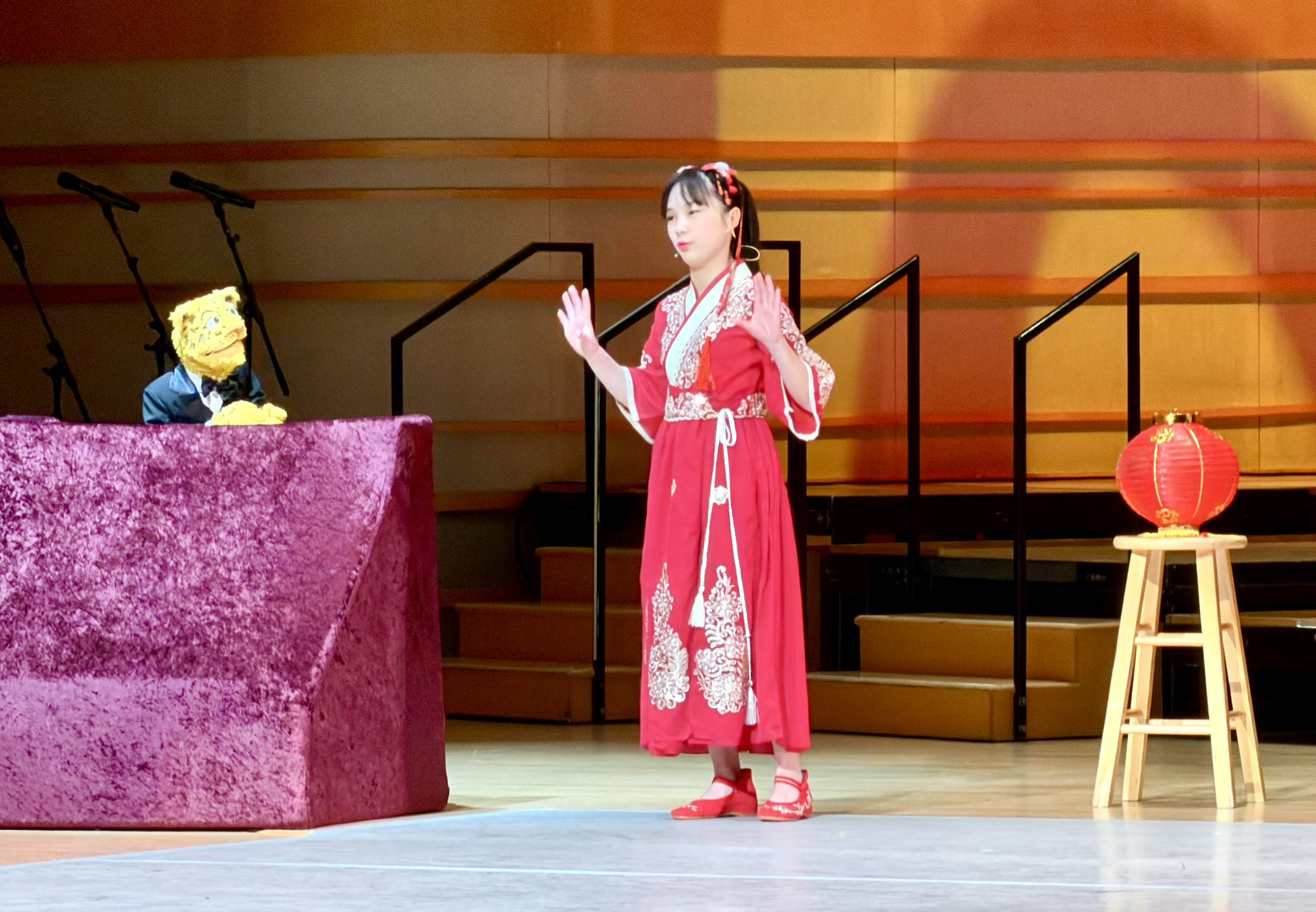 Irvine Chinese School student Nina and the puppet Leopold also gave a playful introduction to the Lantern Festival.