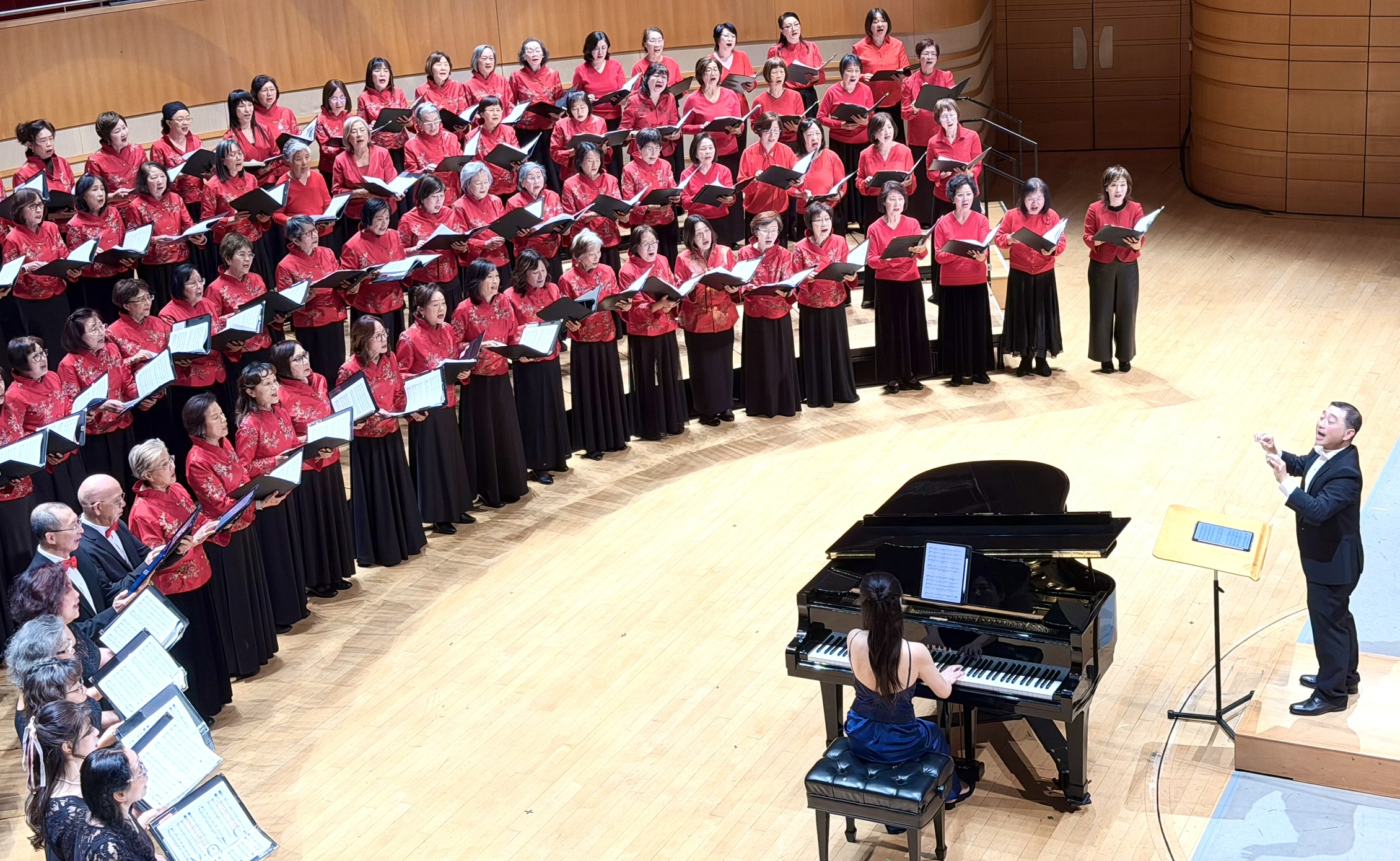 The Irvine Senior Harmonica Ensemble performed a warm New Year medley, Sonata Music Studio sang elegant Vietnamese songs, and the Chinese Dance Company of Southern California amazed the audience with graceful dance.