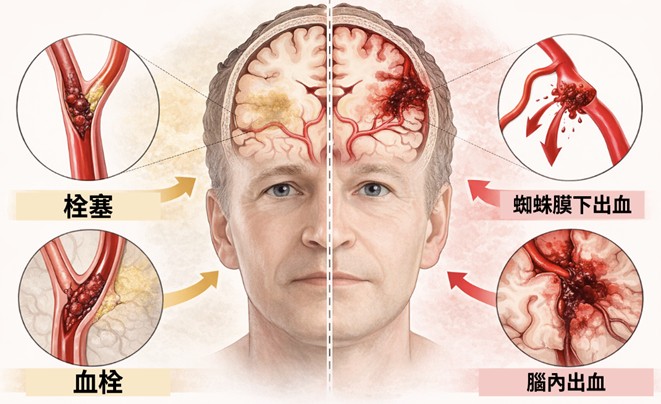 - 腦血管破裂(約 10–15%):例如大範圍腦出血或動脈瘤破裂,多與高血壓控制不良有關。